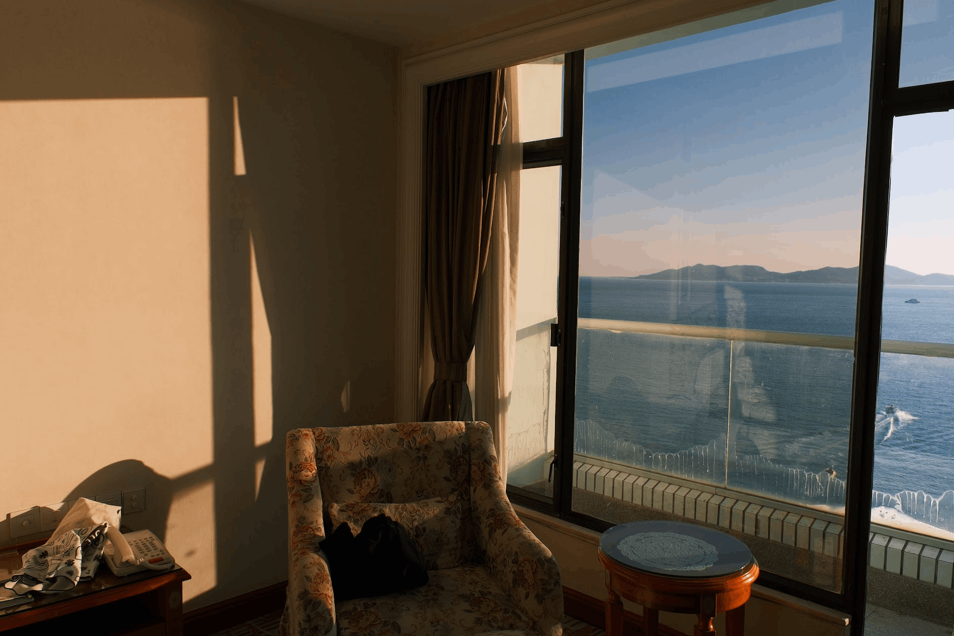 - 酒店: 是在招行上订的海景房,叫「汇泉王朝大饭店」(400/day),就在第一海水浴场的上方,清明这个价格感觉是相当可以了,海景也很不错。