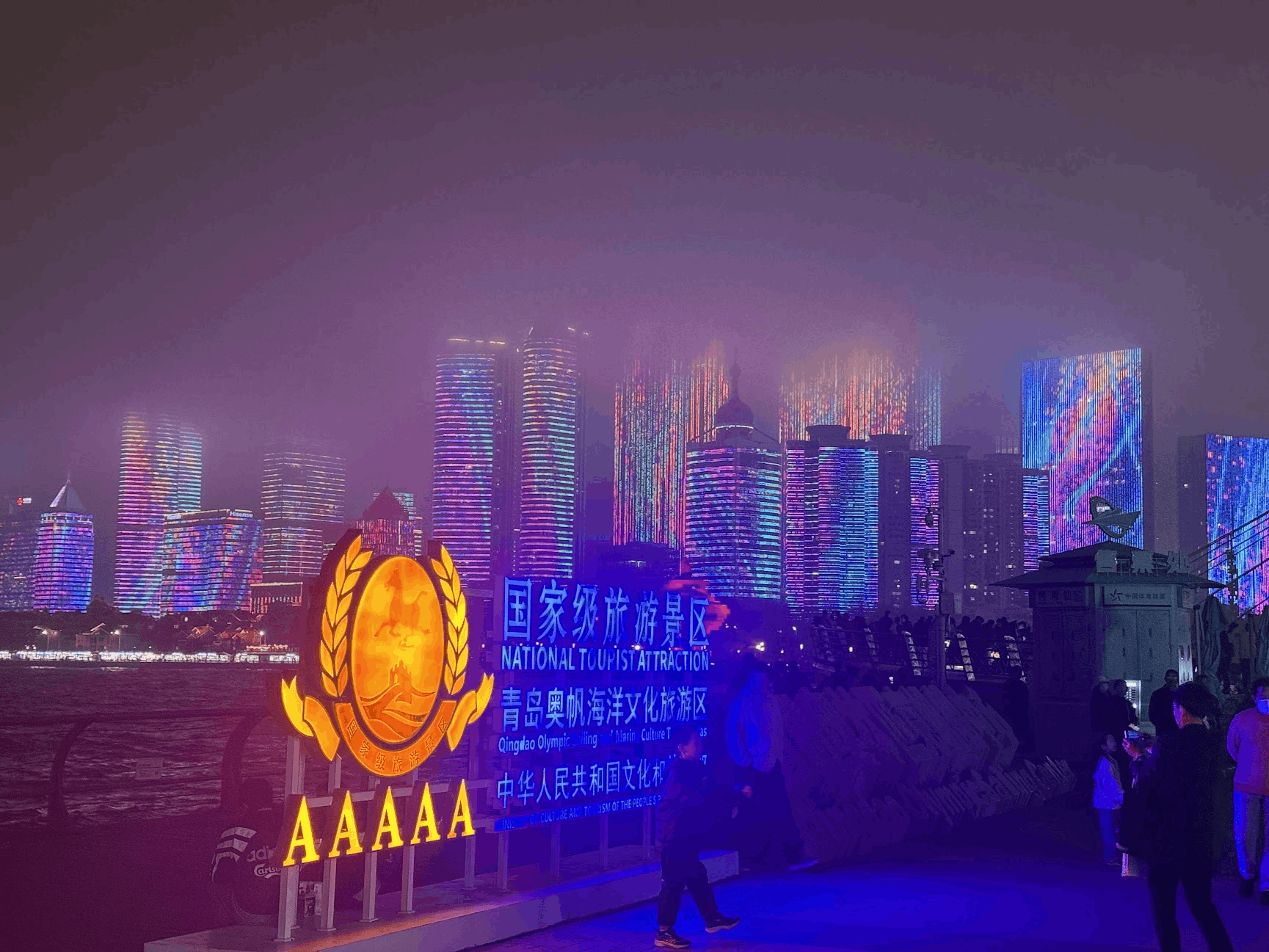 晚上的时候,从五四广场随便吃了点东西就往奥帆中心走,因为那里可以看到青岛新城区的灯光秀。