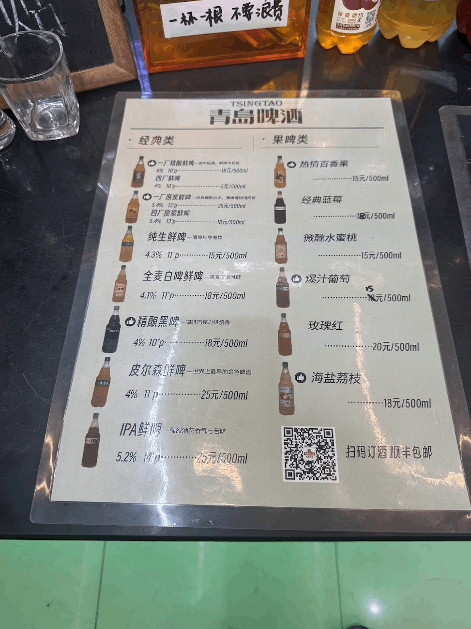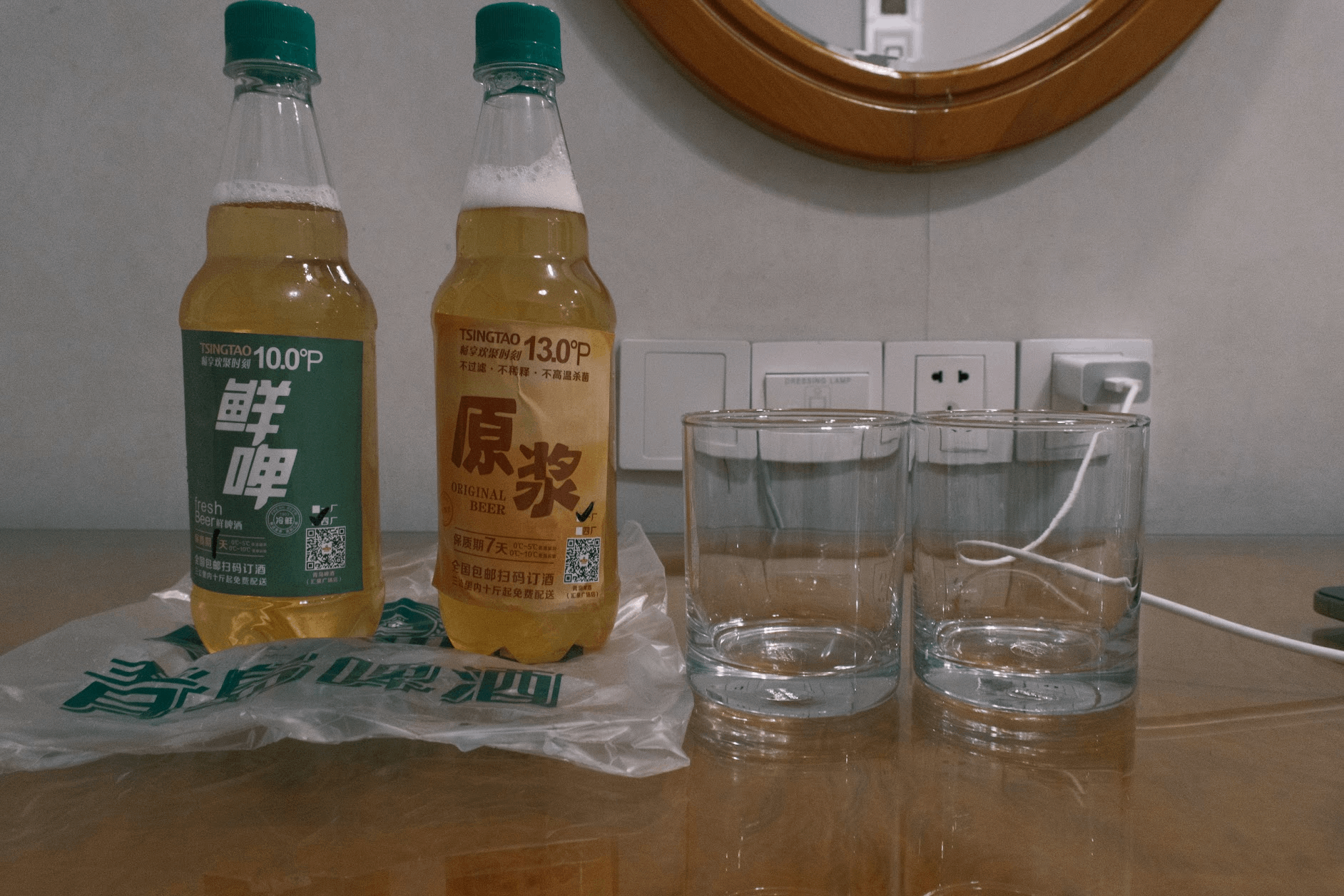 然后回来以后到酒店楼下的青岛啤酒店,搞了一点青岛啤酒一厂和四厂的原浆和鲜啤: