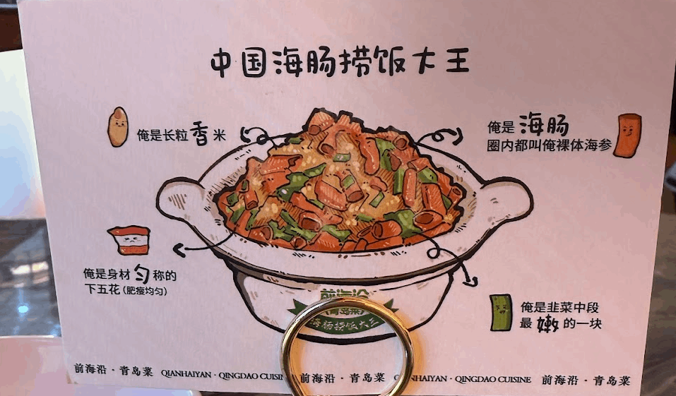 晚上,去吃了「前海沿」的海肠捞饭,其实吃不太出来海肠的味道,更多像是一种吃口感的东西,饭虽然很好吃,但是更多的味道来自于酱油、韭菜、肉沫。