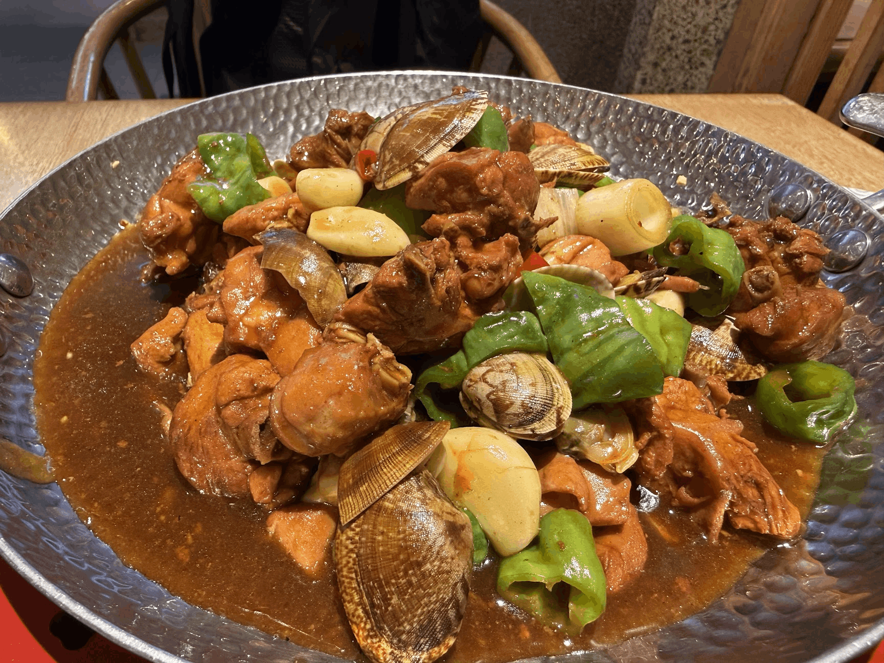 中午吃了「粥全粥到」的蛤蜊炒鸡和鲅鱼饺子,还可以吧,不过感觉不如黄焖鸡和金谷园的饺子。。